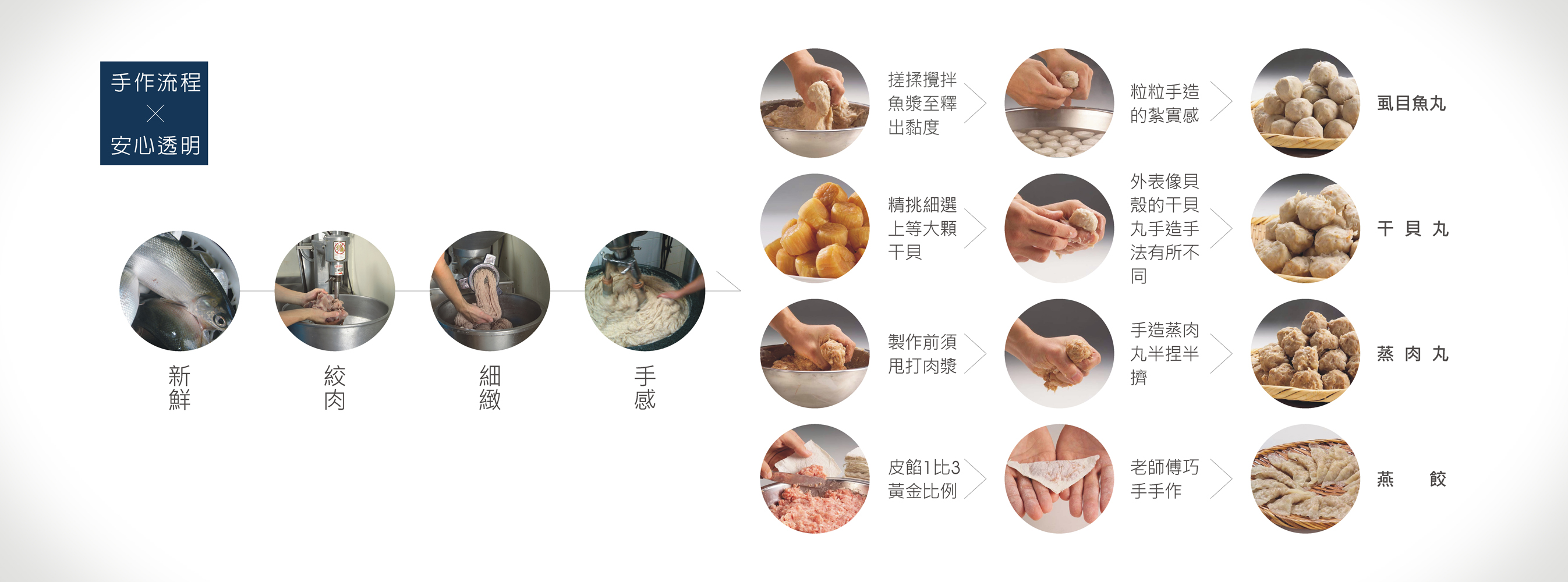 虱目魚丸13顆、干貝丸11顆、蒸肉丸11顆,須保存於-18度C